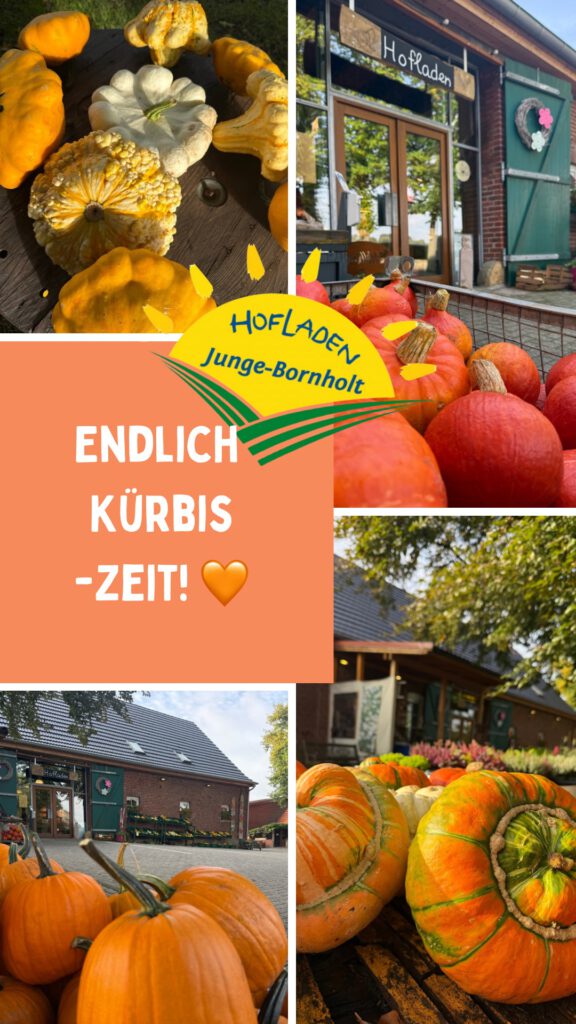Jedes Jahr im Herbst verwandelt sich unser Hof in ein echtes Kürbisparadies! Schon von der Straße aus lässt sich unsere Kürbislandschaft bewundern. Egal ob Zierkürbisse oder essbare Kürbisse wie den Hokkaido oder der Butternut Kürbis – Bei uns gibt es alle rund um die große Frucht!